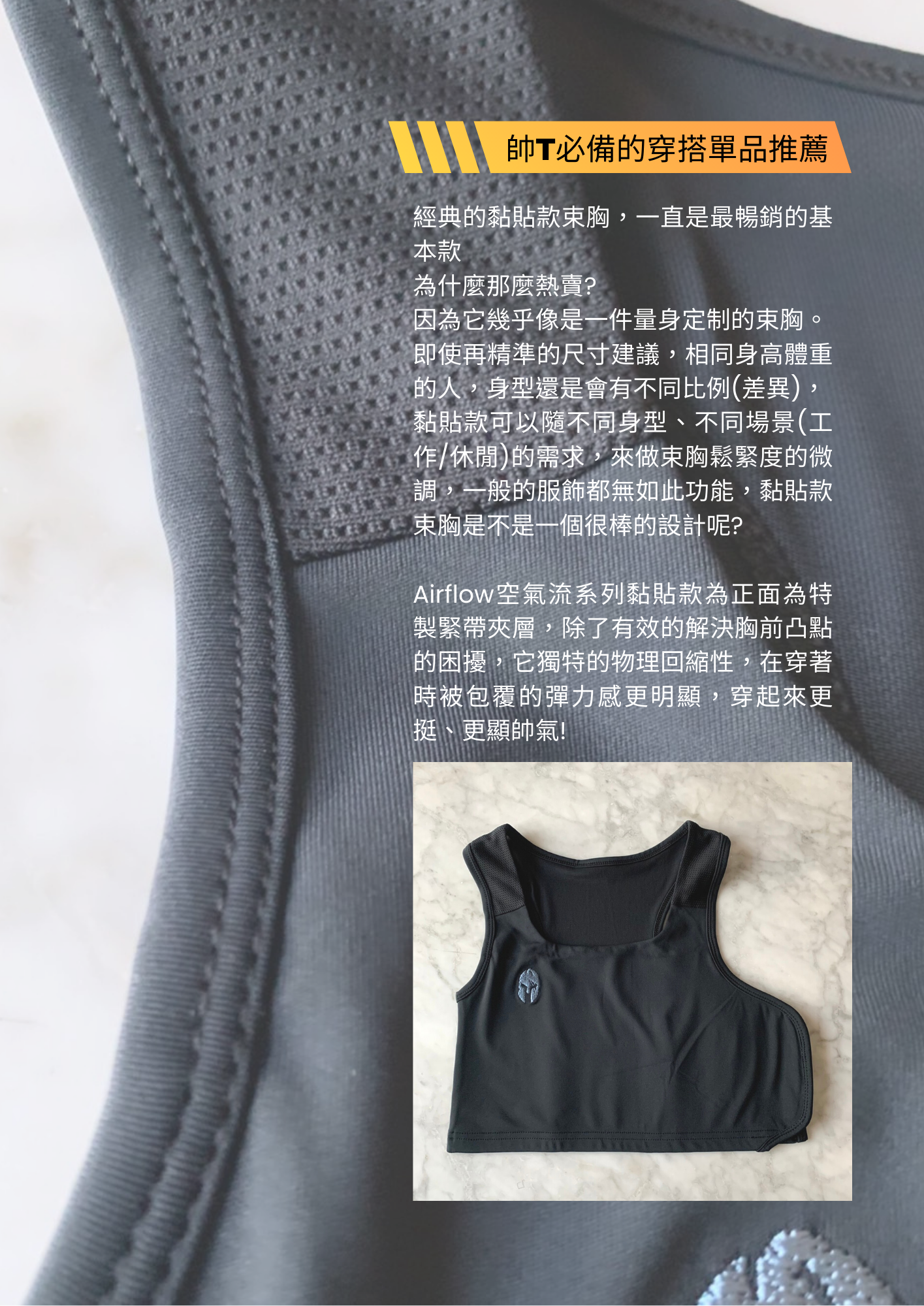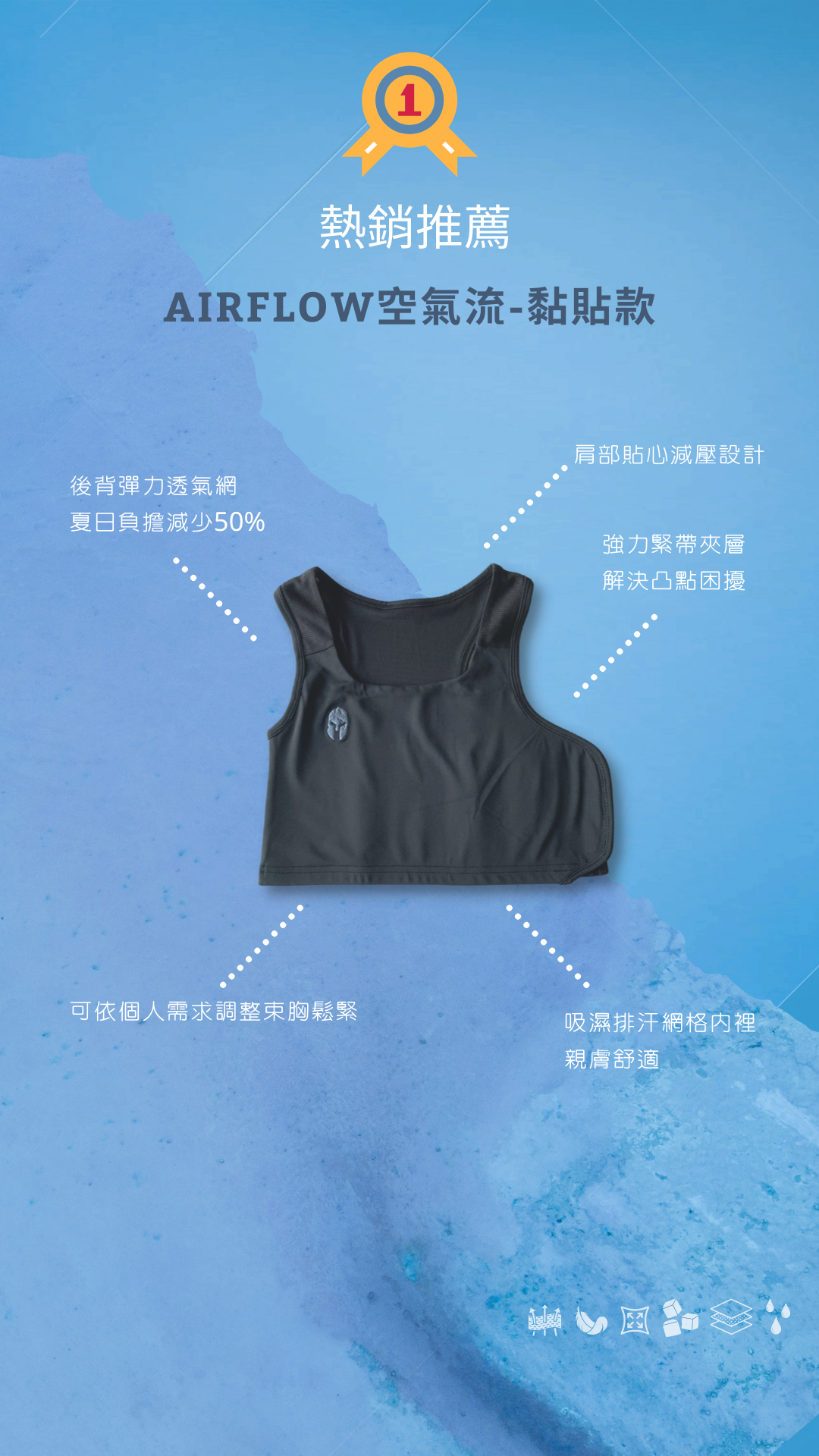 紅點設計獎-空氣流親膚透氣束胸-黏貼款-黑色