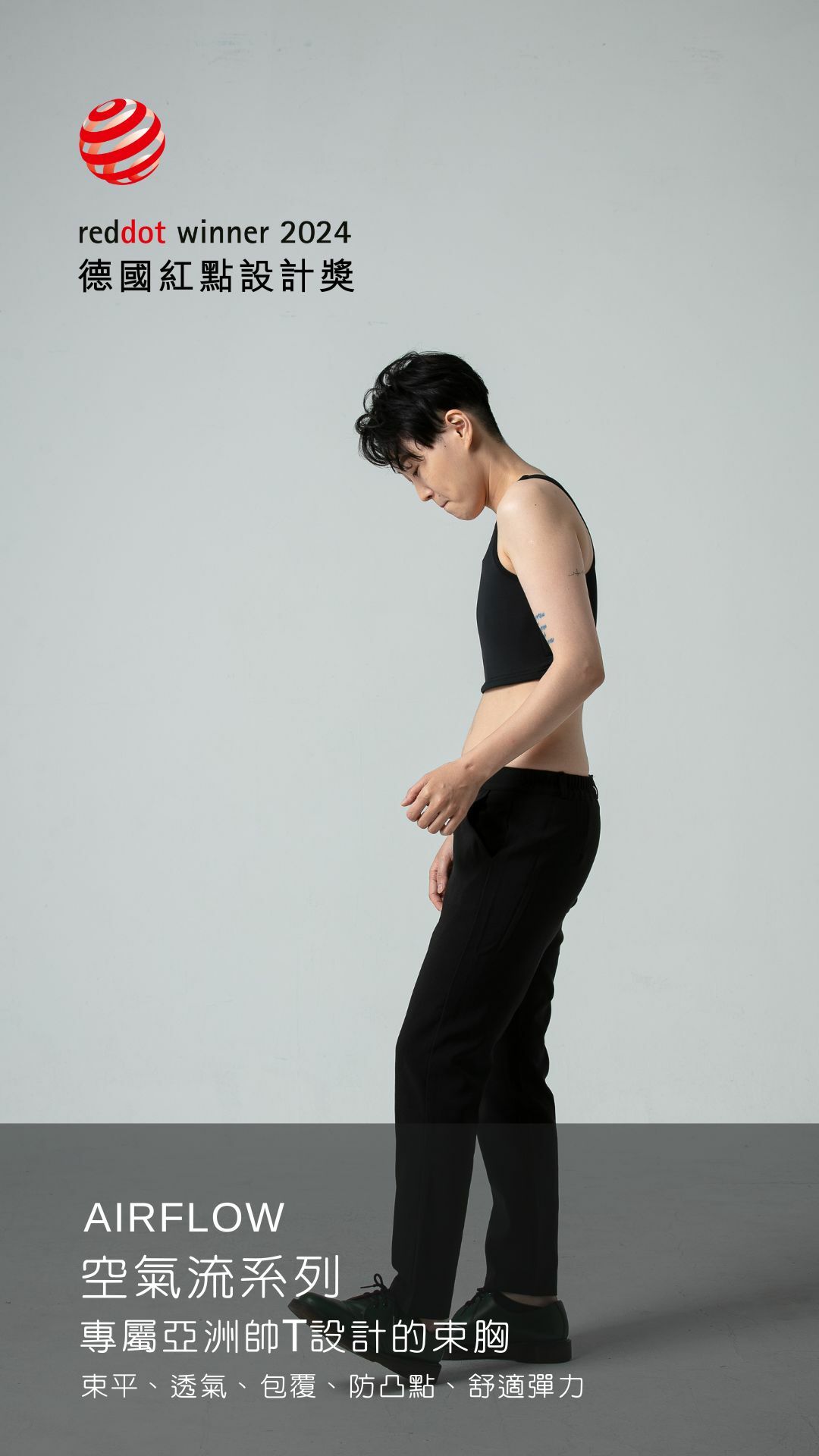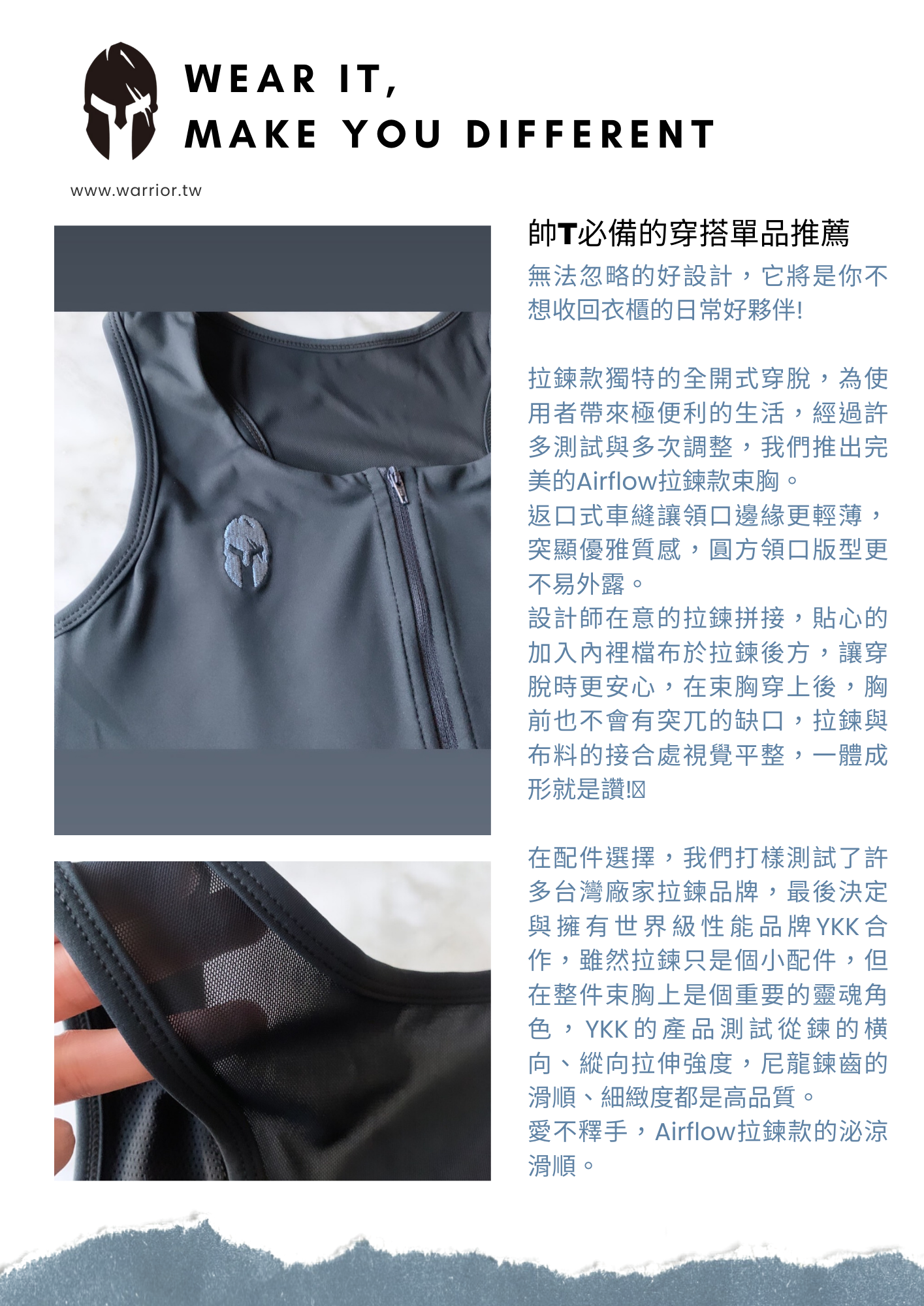 紅點設計獎-空氣流親膚透氣束胸-拉鍊-黑色