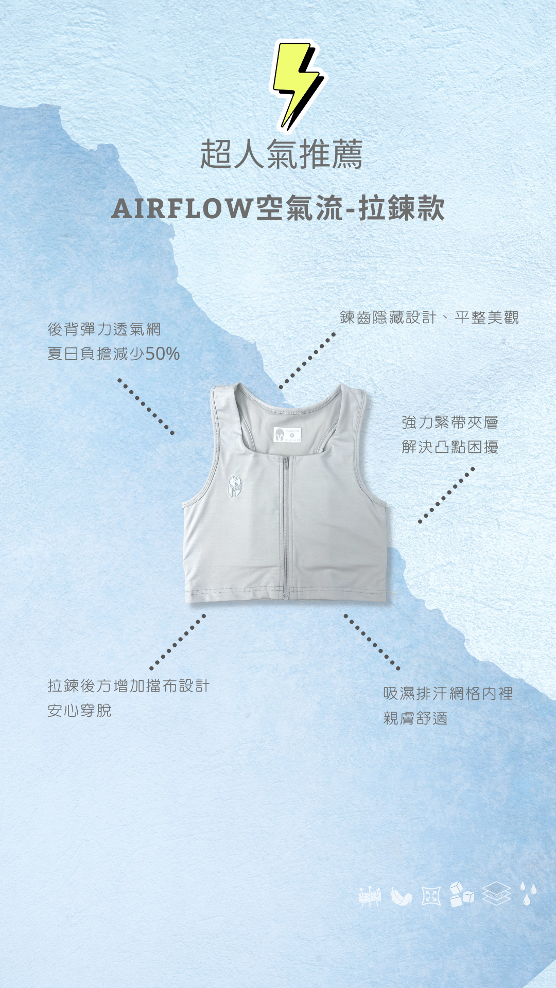 .胸前強力緊帶夾層,解決凸點問題
