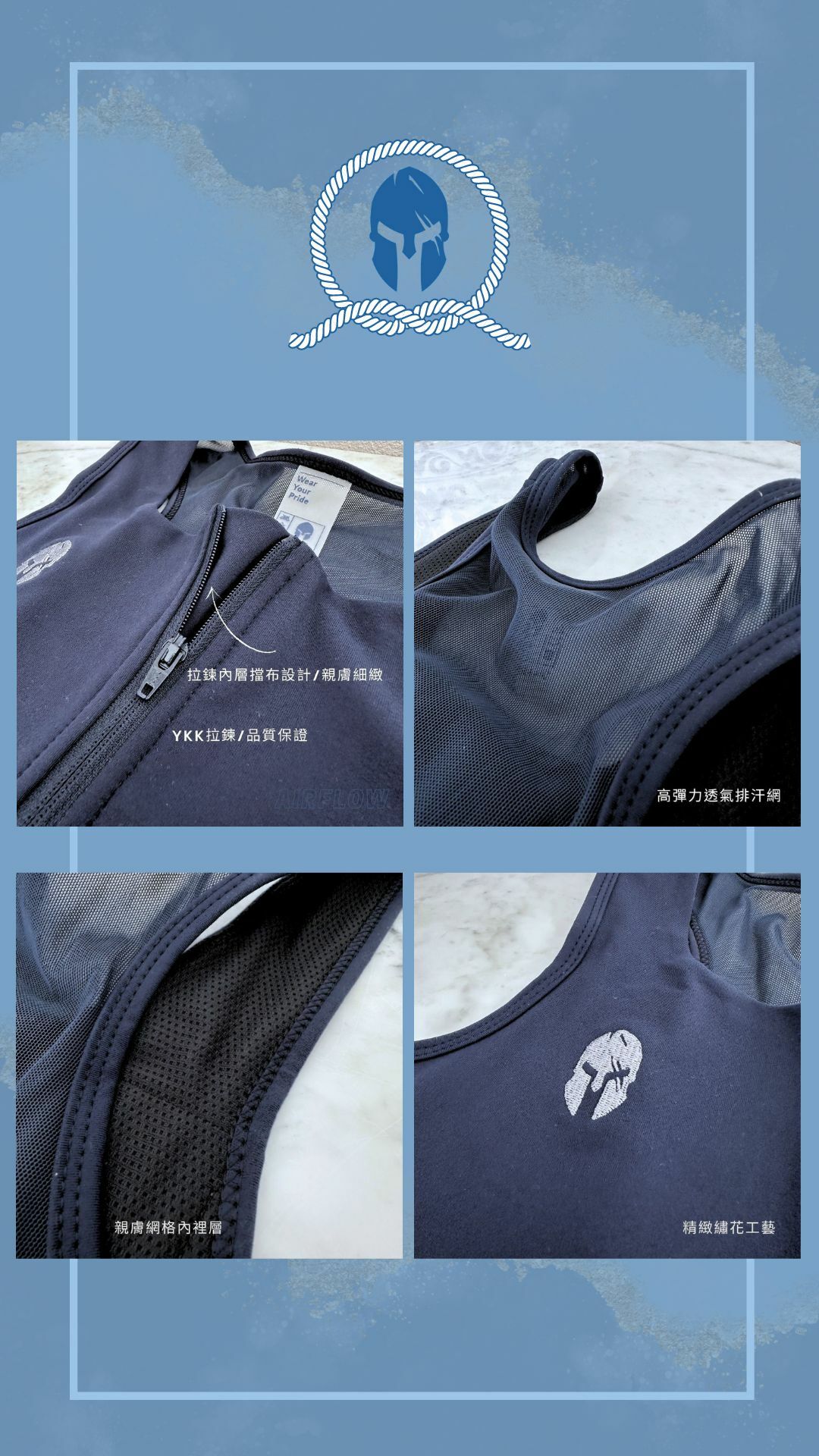 .套組內含Airflow空氣流-拉鍊款,海軍藍與麻花藍各一件